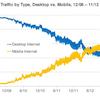 As of now, there are 2.4 billion internet users worldwide, a number that has been growing at eight per cent year on year. In contrast, the total number of worldwide smartphone subscribers is 1.1 billion, and while this is an impressive number, it's still just 17 percent of the global cellphone market, which is over five billion. Also, the global mobile traffic is growing rapidly and it already accounts for 13 per cent of the total internet traffic.