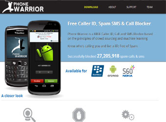 Phone Warrior is a mobile app (available on Android, Symbian 60 and Blackberry platforms) that blocks all spam calls as well as SMS. It provides details like caller name, location and any other spammer information every time a user receives/makes a call to an unknown number. It claims to have a database of over 100 million phone numbers globally. Some of its features include free caller Id and caller info details (Indian users can see caller info without internet also), integrated text & call blocker, real-time spammer lookups for unknown numbers, etc.