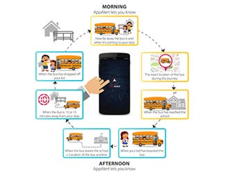 Anxious parents standing at bus stops waiting for the school bus to drop their children home is not an uncommon sight in Indian cities. However, it is quite possible that on a given day, a student fails to board the bus or gets down at the wrong stop. Now, most schools do not allow students to carry a mobile phone. Under such circumstances, how can a parent find out where the child is? US-based AppAlert Inc has come up with a real time mobile-app school bus tracking system that tells the exact whereabouts of the child when she is enroute to school or home.