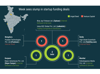 The week witnessed a slump in the startup deal activity with only seven firms raising capital, down from as many as 20 that had received first cheques during the previous week.