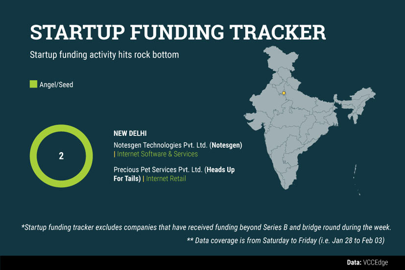 Delhi-based Notesgen Technologies and Precious Pet Services were the only companies that raised angel or seed funding.