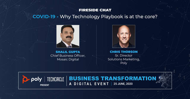 During a fireside chat at the recently concluded TechCircle Business Transformation awards, Poly's senior director for solutions marketing Chris Thorson and Mosaic Digital chief business officer Shalil Gupta discuss how and why technology is at the core of small but prominent deployments by enterprises as they tackle a global pandemic.