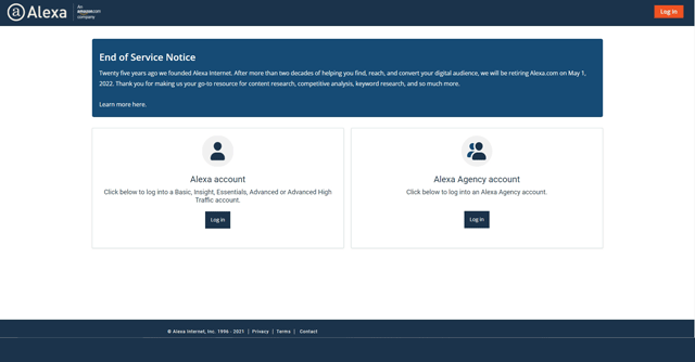 A blog post on the website read, “Twenty-five years ago, we founded Alexa Internet. After two decades of helping you find, reach, and convert your digital audience, we’ve made the difficult decision to retire Alexa.com on May 1, 2022. Thank you for making us your go-to resource for content research, competitive analysis, keyword research, and so much more.”